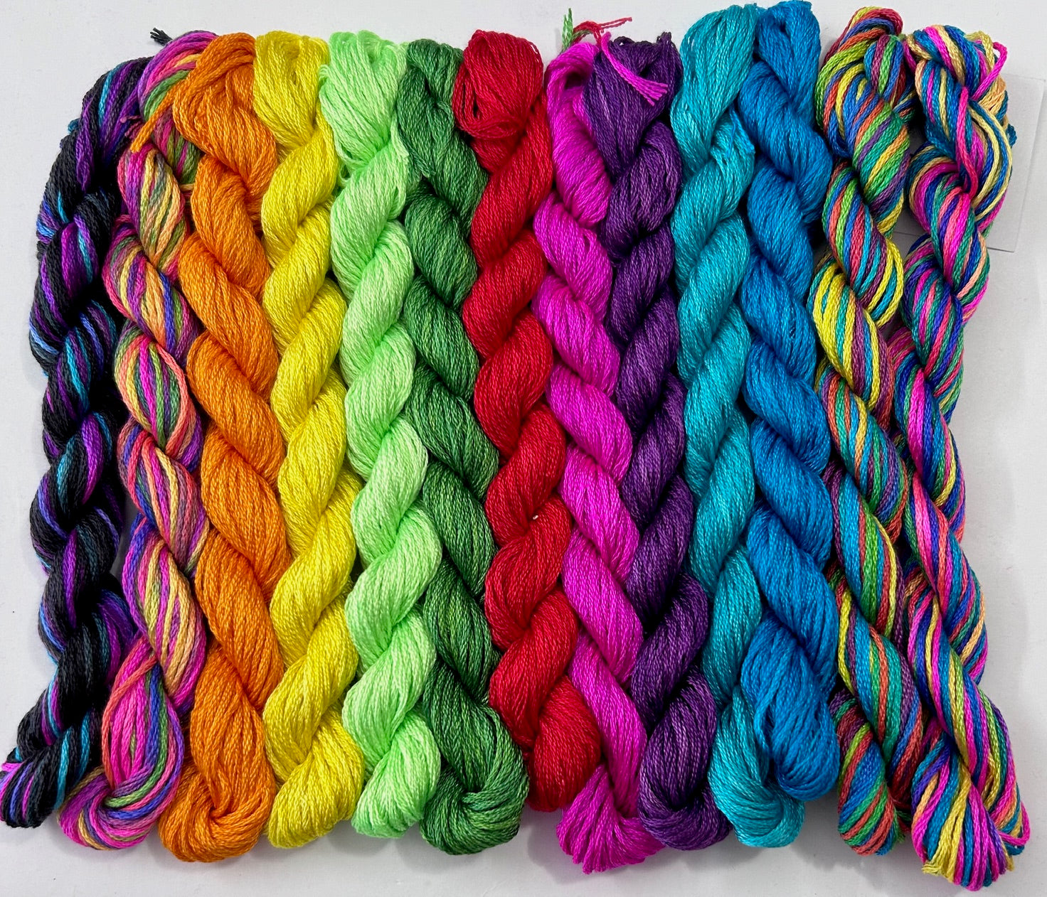 This pack of Bright Colours includes silk from our Premium Silk range and each skein is 6 stranded premium silk and is 15 metres in length.