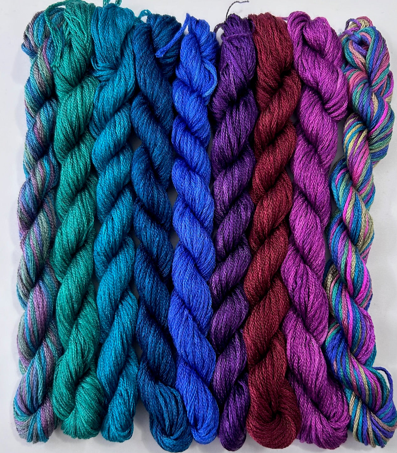 This pack of Jewel Colours includes silk from our Premium Silk range and each skein is 6 stranded premium silk and is 15 metres in length.
